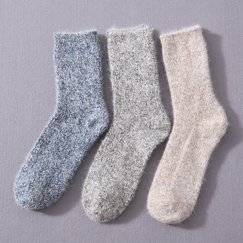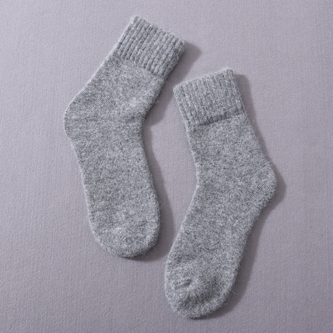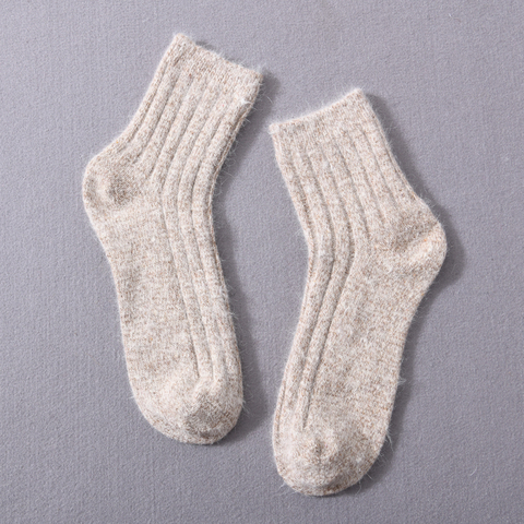 Logo personalizzato all'ingrosso Stock di lana morbida in maglia traspirante confortevole filato peloso inverno sfocato semplici donne calze di lana