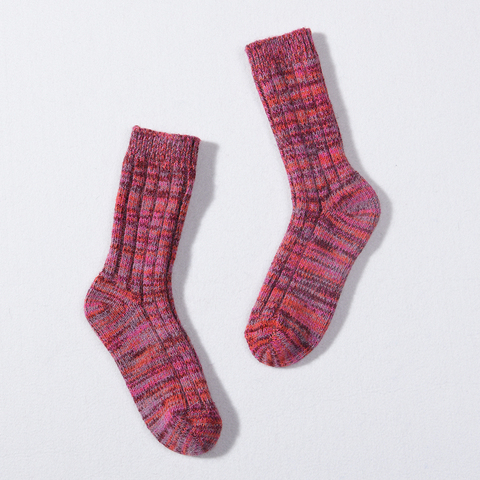 Nuova moda all'ingrosso di alta qualità filato peloso spesso caldo colore misto a righe morbido Cashmere lana lavorato a maglia inverno calzini da donna