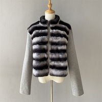 जेक्सवाचर स्टैंड कॉलर शीतकालीन प्यूफर बॉम्बर जैकेट महिलाओं के लिए क्रॉप्ड बुना हुआ ऊन कोट कस्टम लक्जरी वास्तविक रेक्स खरगोश फर कोट