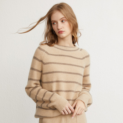 도매 100% 캐시미어 니트 코트, 가을 루즈핏 스트라이프 맞춤형 겨울 여성 풀오버, 순수 몽골 100 캐시미어 스웨터