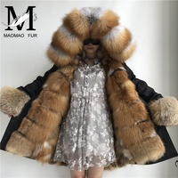 ฤดูหนาวผู้หญิง Fox ขนสัตว์ Warm Parka สุภาพสตรีเสื้อโค้ทยาว Outwear แฟชั่นฤดูหนาวหญิงจริง Fox ขนสัตว์ Parka